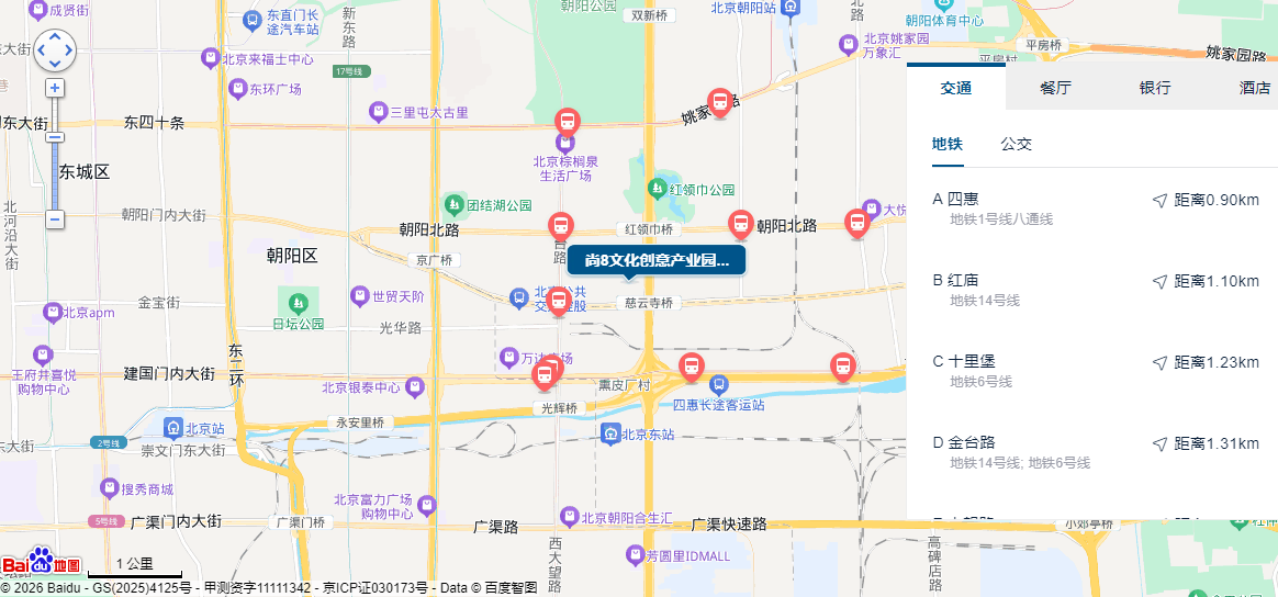 交通地铁:距离地铁1号线四惠距离出口909米